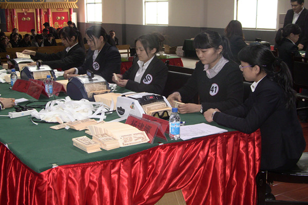 2013年4月19日8時(shí),第三屆“勞動(dòng)之星”職業(yè)技能競(jìng)賽實(shí)踐操作由盛泉油脂承辦的單張點(diǎn)鈔、機(jī)器點(diǎn)鈔在盛泉油脂職工培訓(xùn)中心正式啟動(dòng)。本次比賽共計(jì)60名參賽選手。集團(tuán)公司對(duì)比賽全程進(jìn)行了現(xiàn)場(chǎng)監(jiān)督。繼今日的比賽項(xiàng)目之后其他工種的比賽也將在近期陸續(xù)展開(kāi)。