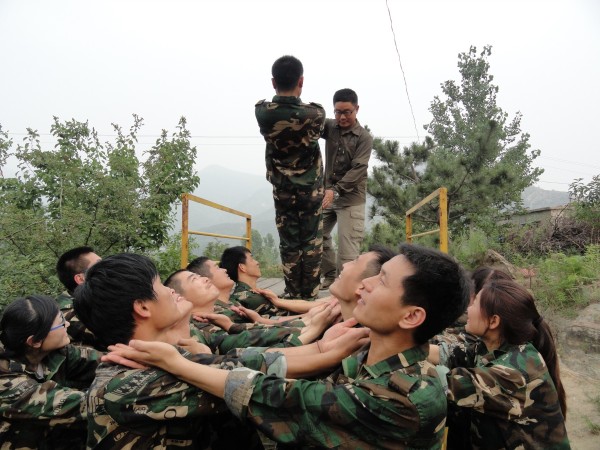 其中令人感觸最深的項目是畢業墻,又稱逃生墻,源于二戰時期水手合力爬上四米多高的甲板逃生的真實經歷。一塊4.2米高的高墻,光滑、沒有任何工具,要求所有的隊員都翻越過去才算勝利。這是最后一個項目,它把團隊精神發揮到淋漓盡致。大家采用“疊人墻”的方法,讓身強力壯的隊友作為底座,先由身手靈活的隊友踩在他們的肩膀,大家奮力將他們先托上高墻,然后他們在上面接應,其他隊友踩著底座隊友的肩膀,一個一個成功地翻越了高墻。整個過程歷時不過10分鐘,翻越高墻后,所有隊員都為自己和團隊的精彩表現鼓掌、歡呼。那一刻的場面激動人心。